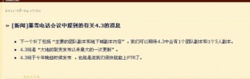 最新传言,暴雪在电话会议中提到的有关魔兽世界4.3版本的消息。其中主要包括以下几个方面……