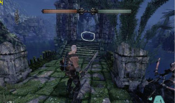 点完火之后 向前走几步 也会有提示的 也是按E 妹子就会用火箭射对面的火盆 机关就会解开出现一条路