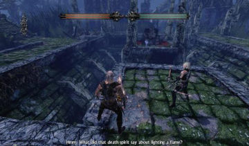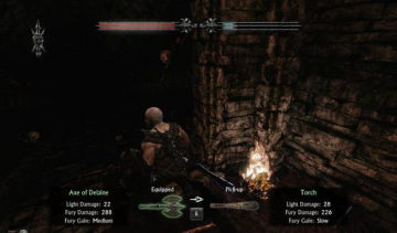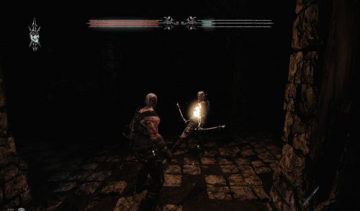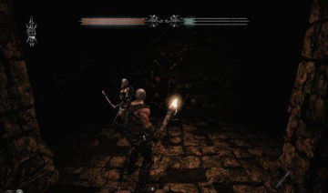 进到们里 门口会有一个火把 建议换上它 因为里面很黑 靠近火盆就会自动点火了 当然 你也可以让妹子点燃她的箭也可以照亮