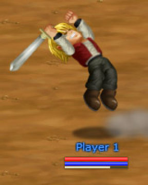 抓住敌人![]() 攻击敌人两至三次, 敌人便会变得摇摇欲坠, 这时只要步向敌人, 便可抓住他. | 攻击![]() 抓人 + (A) | 投掷敌人 ![]() 抓人 + →(A) (抓人跳跃时也可出这招) | |