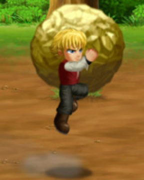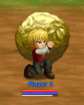 拿起物件 ![]() 步近物件时, 按 (A) | 跳跃 (消耗 SP) ![]() 拿住物件 + (J) | 奔跑(消耗 SP)![]() 拿住物件 + ←← 或 →→ | 投掷物件![]() 拿住物件时, 按 ← 或 → + (A) (跳跃时也可出这招) |