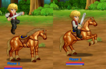 前冲![]() 骑马 + →→ (前前) | 转身 ![]() 骑马 + ←← (后后) | 跳跃 ![]() 骑马前冲 + (J) | 前蹄攻击 ![]() 骑马 +↓ ↑(A) |