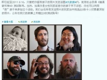 即日起至2011.9.16,只要把你留有胡子的照片发进话题#大波胡#内,就有机会获得《暗黑破坏神III》测试账号。当然,如果你是女性玩家或者你的胡子并不浓密,你也可以利用“假”胡子来参加这个活动。我们会在所有发送照片的玩家当中挑选出5张令人印象最深刻的照片,公布在我们的微博上并赠出5枚测试账号!