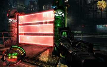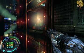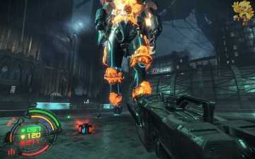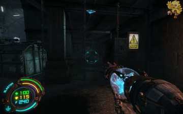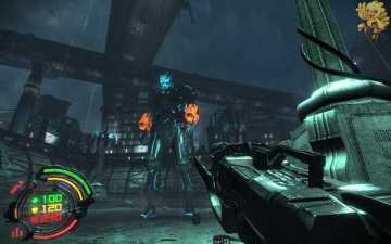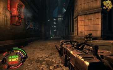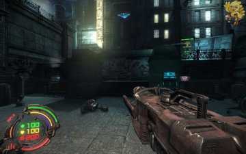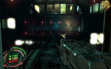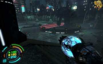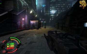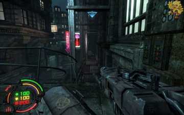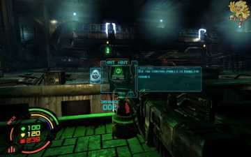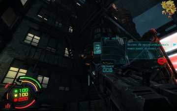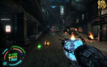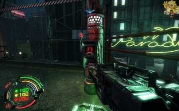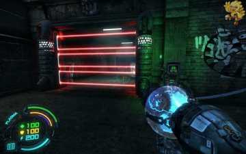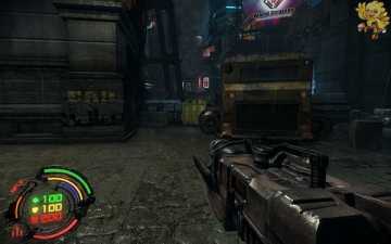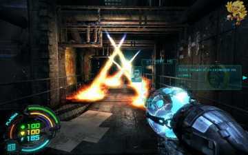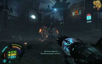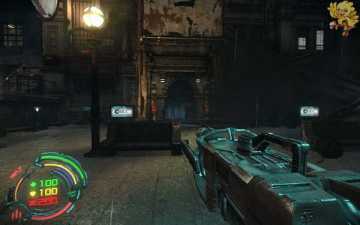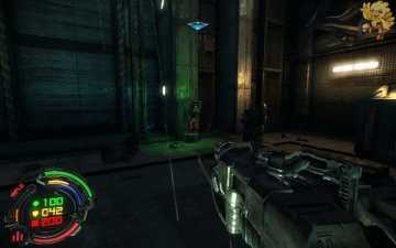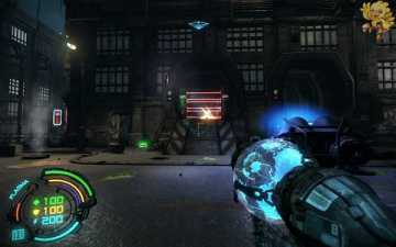 到二楼会有新的机器人,像人形的,用机枪打他们最快,然后清理到左边去,会看见一个小巷子,前面有个机器人在电脑面前做什么东西,打掉,过去开启。