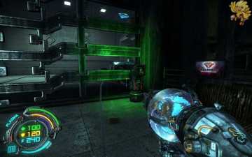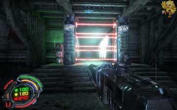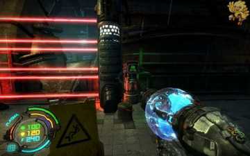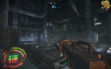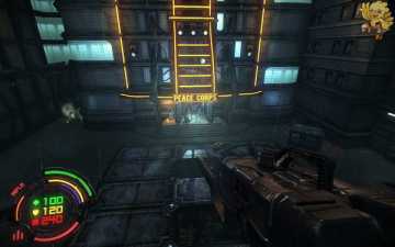 第二关一开始从这梯子上去,上去后会有机器人来围攻,清理掉后走到前面,有个门上下浮动,进不去,过来打开旁边的控制器,进去旁边的门,打开里面的开关,前面的门就打开了。