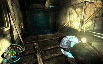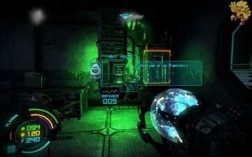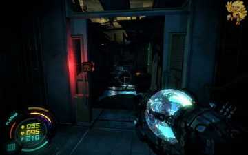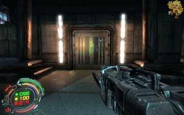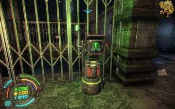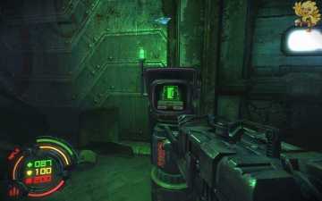 然后我们返回到刚才路被封闭的那里,这时候可以通过了,过去清理掉那些机器人,二楼也会有,清理完后,左边的门会变成绿色,打开进去。