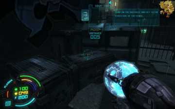 过去后从前面斜坡下去,打开旁边的门,门会破裂掉,前面清理小机器人,在从楼梯间里下去。下去清理对面机器人,然后旁边门就会自动打开了,进去跳下去。