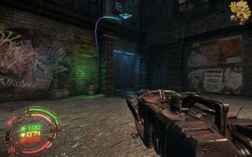 过去这个桥后往右走,会看见个清洁机器人,无视它...继续上前面的梯子,从右边里进去打爆那个发电机,然后从巷子过去,巷子过去会看到过不去,从那里看到前面的右边有发动机打爆,就可以通过了。