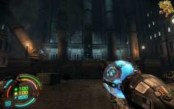 打爆这个玩意,就可以进去了,进去后,左边会有武器升级,升级完成,右边有个控制台打开他,然后个看见前面在冒火。