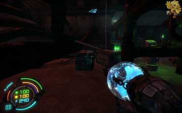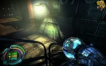 过去清理小怪,从前面的梯子上去,然后看到左边的路是 被封闭着的,我们就从右边的梯子上去,饶过去,从那边下去清理完机器人,打掉墙角边的发动机。