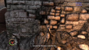 侧走,把囚车推开。干掉前面的卫兵,然后绕到最边的巷子里面,变身用技能打烂架子上去。走到前