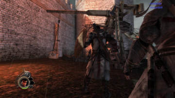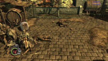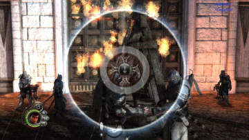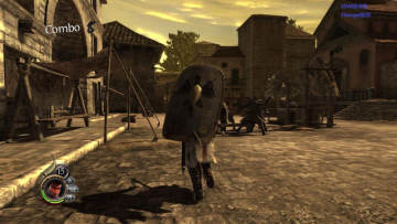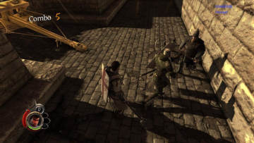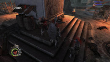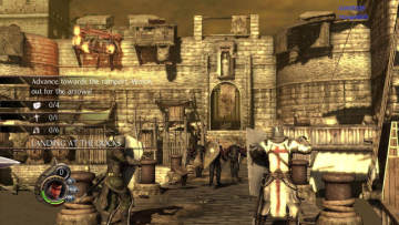 先杀掉一出的几个卫兵,然后往前面的楼上会有几个弩兵,干掉他们,CG后又来一帮卫兵。然后从右