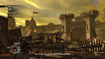 个,门的血很厚!然后保护两个卫兵推弩车,清理出现的卫兵!他们推着弩车抵达大门那里的时候,