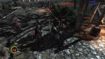 从上面的路走过,干掉楼上的弓箭手,然后推开囚车。清理卫兵,一路杀过去,前面的路被一辆手推