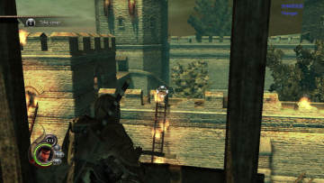 使用攻城车撞门,进去以后像第一章第二关一样前进,前进一点射死城楼上面的卫兵,继续前进,清