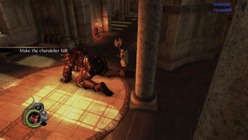 入一场混战以后,速战速决,去过协助同伴把挡在楼梯旁的弩车推开,然后上楼梯进入一个房间(二