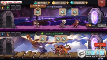左上角有玩家等级和战力,而右侧是目前持有的资源,分别是体力,金币和钻石,右上角是功能下拉按钮,里面有英雄(在英雄里可以查看玩家的所有英雄),背包(存放玩家的所有道具),任务(玩家每天可以做什么)和好友;