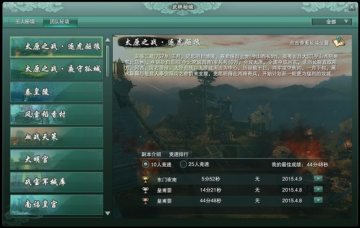 挑战模式以“竞速”为准则,排名根据团队全通秘境的整体用时为序。开放挑战模式的秘境(“侠义乾坤”资料片中仅开放“10/25人挑战·太原之战·夜守孤城”及“10/25人挑战·太原之战·逐虎驱狼”)将在秘境介绍——竞速排行界面分页中,显示团长、全通用时、团长所在帮会、挑战日期四项内容。点击排名中的