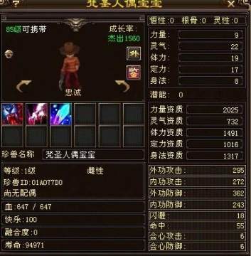 下边是85级携带宝宝梵圣人偶的各级变异图欣赏