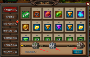签到可以说是每天登陆游戏后第一件要做的事情。玩家每天都可签到一次获得不同的游戏道具奖励。累计签满7天,15天,28天好能获得宝箱奖励哦!
