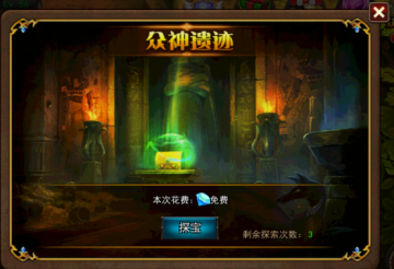 每日可免费探索一次,获得不等的金币,这里是唯一大量出产金币的来源,当然,除了做任务也会产生金币啦,但绝对没有这里的多,每次探宝可能都会触发幸运女神的眷顾噢!