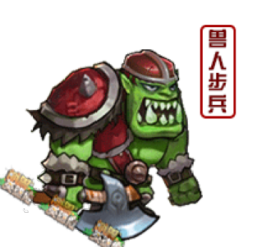 兽人步兵:近战,兽族物理攻击兵种。由兽族最强壮的战士组成,强悍的身躯可以使他们不知疲倦地杀