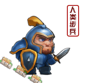 人类步兵:近战,人族物理攻击兵种。防御较高,人数众多,可在军阵前排吸收伤害。