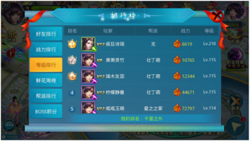 《热血仙域》排行系统 来源: 飞翔小编 2011/11/11 17:12:40 浏览量:214 在出城界面点击“榜单”可以查看排行榜,如下图。排行榜包括好友排行、战力排行、等级排行和鲜花周榜。玩家可以在界面最下方查看自己的排名情况,也可以点击相关玩家,与其进行互动。
