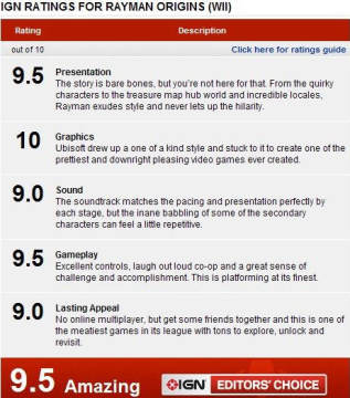 前一段时间传说Ubisoft将会推出《雷曼起源》,今日IGN网站为我们给出了这款游戏的评分。