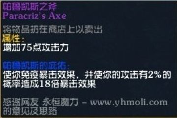 话说这东西在属性在属性增加方面不是很优秀,但是他的攻击加的相当高!而且他那很IMBA的效果,实在是让PA、小黑之类高爆发,高暴击的英雄情何以堪啊!有了它你再也不怕Roshan那令人蛋疼的1w倍暴击了,而且在有一定血量基础的情况下神马群星啊大炮啊你也不再惧怕!