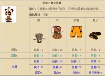 装备简介:京城著名裁缝师亲手制作,采用天山雪鹿制成,防御性极好。