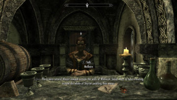 在宴會中找到一個坐在椅子的男人去吸引宴會中人的注意,令你有機會去取回你給malborn的裝備.然後與malborn對話,帶你去取裝備當你搜查Thalmor的家時,發現不到任何關於龍的事,但發現到Thalmor在找尋一個esbern的人,而esbern是一個十分了解龍的人。