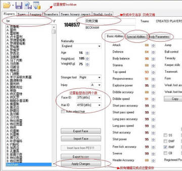 首先,向大家介绍用游戏里自带的隐藏球星的脸型创建球员:就拿贝克汉姆举例吧,其他隐藏球星的制作方法一样。