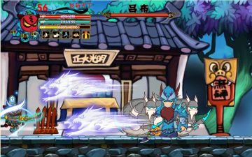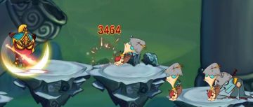 第二关小怪要开始注意了这两种兵,如果还没点出技能,就要像打BOOS一样,拉开距离跑砍平砍2下再跑砍走,因为从这一关开始后边的小兵都会反击。咱们羽哥是相当脆的,不像备备自己会加血