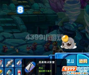 获胜之后,就会看见地上有贝壳,点击贝壳,就可以进入随机精灵对战!在这里有一定机率可以遇到费舍,机率不算低。
