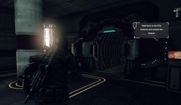 从右侧门进入之后会出现两名新敌人解决后继续前进对着门按E后对话完毕会给密码(2385)之后回去去左侧的门输入(WSAD选择回车确认)打开即可,控制主角出门后跟随目标人物即可在进了一个大厅后会出现一个新敌人击杀掉后继续前进在又进了个房间后左侧会出现敌人同样击杀然后跟随目标人物,下来之后需要按照顺序开关系统(顺序432)开启后去目标点根据按键提示操作开启机器此时会出现4名敌人解决即可