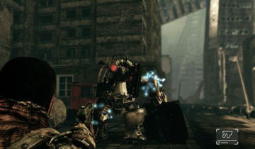 前进捡起霰弹枪前进在转角会遇到两名敌人击杀前进在路上会遇到一名敌人.到左侧操控面板货柜掉下来后去右边发电机触及后上右侧触及面板从掉下来的货柜过去捡起电池回来给左侧发电机装上后会遇到一名敌人解决后走楼梯前进,转阀门开门进去砍断右侧的固定器