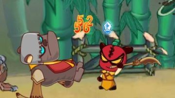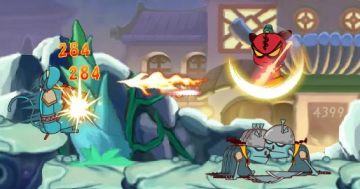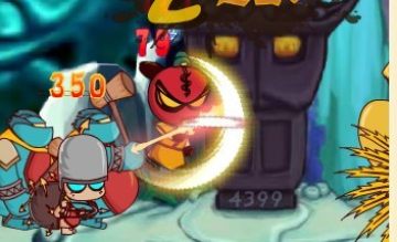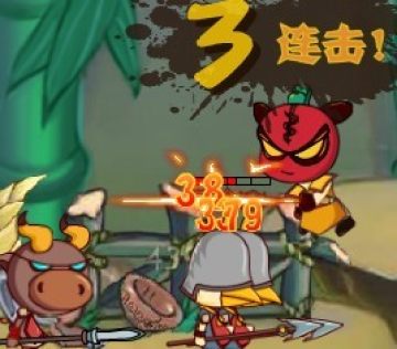然后会遇到带着头盔的鸭子。鸭子防御力和攻击力都比牛头怪厉害,而且它的攻击速度很快。这个时候打法就要换一换了。把武力强化用了(打完牛头怪也差不多了),然后退后一点点,跟鸭子一直保持屏幕上一个大拇指的距离。就这样狂普通攻击,当后面的鸭子也来了的时候,前前攻把鸭子了解掉,然后转身同样地步骤……