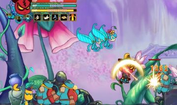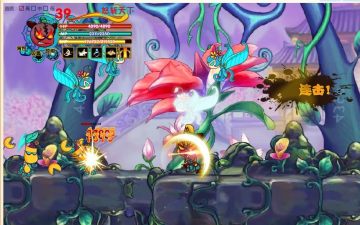 这可是个重要点,我们可以用这个方法杀了右边的食人花,而且再杀了左边的一只食人花。剩下一只和大片蝴蝶,还有Boss,直接必杀技,然后杀了食人花,捡药水,对Boss进行远程攻击。