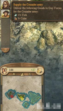 另一个任务是让你给左边小岛的海港送去数量15的鱼和3苹果酒,建立一个苹果酒厂吧,建好后积攒足够的数量就可以运送了,控制自己的小船运过去,送到后点击确定完成任务