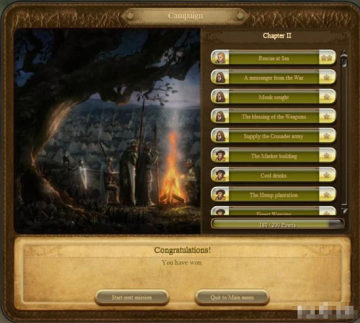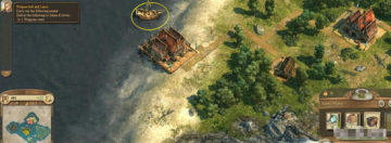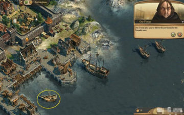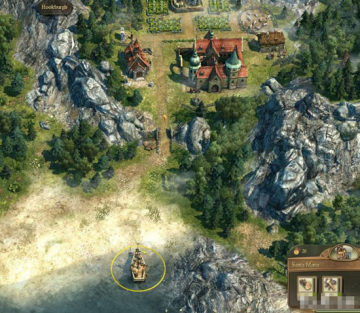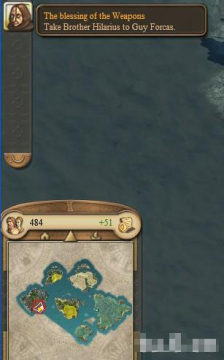 完成后再次触发一个新任务,到11点钟方向的一个修道院hookburgh小岛去,带上木材和工具在海边点击右下角闪亮图标,建立一个港口,把道路和港口连接上,把僧侣拖到你的船上,带到左边岛屿完成任务,过关。