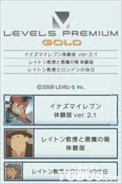 OM仍然包含了《闪电十一人》和《雷顿教授》两部作品,选择第一项进入我们的足球世界。菜单第一项加入了素质不错的动画,第二项则是游戏宣传,想真正进入游戏还是选第三项吧。