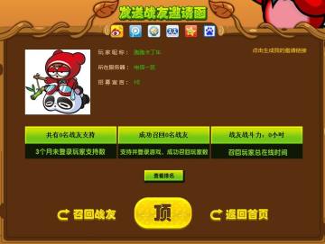 如果你是被召唤的战友,点击朋友送给你的链接后,你将会进入他的活动主页上。此时你只需点击页面下方的顶,即可为你的朋友加分。如果他是你的好哥们,那你一定要立刻登陆游戏并找到他,和他尽情享受比赛的乐趣!如果你的在线时间足够长,你们都将有机会获得精彩的奖品哦!注意:活动信息将在第二天进行更新。