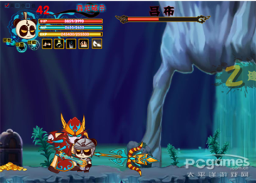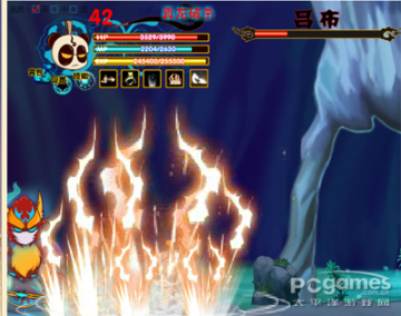 加完状态然后直接上去和吕布对砍,(这里要问为什么不放那个打貂蝉的雷刺斩技能呢?那是因为两点原因:一,打貂蝉时消耗了太多的蓝,此时不适宜再狂放这技能。二、平砍累积伤害不比你这个技能打一下低。)