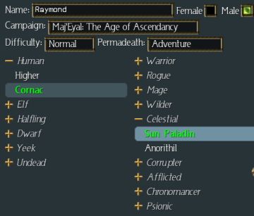 1、种族选择Human->Cornac,职业Celestial->Sun Paladin