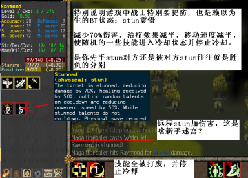 补充说明的是,初始的wild狂暴符文除了伤害减免外,附带治疗 physical物理效果,stun属于physical状态,本来可以使用狂暴来解,但是这次连狂暴都被禁了,只有利用障碍物掩护视野并后撤,等待效果结束,再找机会先手攻击。