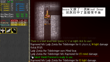 就借着这机会讨论一下非S/L的话题,ToME4是一个充满的随机要素的游戏,多种因素在一个大概固定的范围内波动,比如地形和怪物生成的种类和位置,这些因素在很小的概率下可能全部对玩家不利,因此最安全的打法也可能会出现死亡的情况。这就是roguelike单命模式极度困难的原因,有限命的话像这种情况死了就死了,关键是要避免因为自己犯错导致死亡,一次完整的游戏这种情况不会出现很多次,这次也并没有死。
