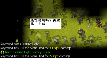 此外还分布着开阔的洼地,不要走到中间去,因为迷宫里的怪物会远程攻击,就沿着树林探索,没事可以放放治疗和燃烧之光充能量。