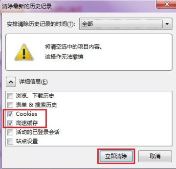 ②如果网络正常,请试着清除网页的缓存和cookies,清理方法如下: