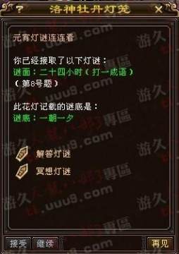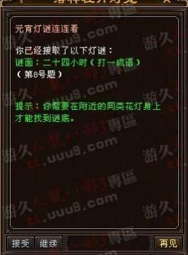然后随便点取一个花灯,上面会有一个谜面,然后点击接取任务。
